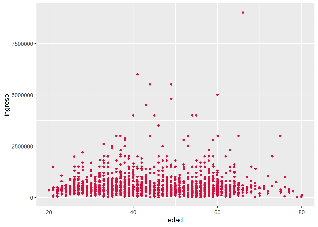 sjPlot::plot_scatter(proc_elsoc, edad, ingreso)