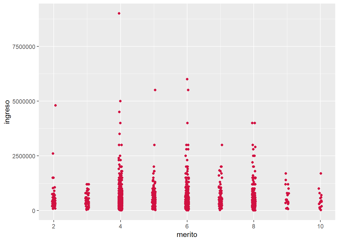 sjPlot::plot_scatter(proc_elsoc, merito, ingreso)