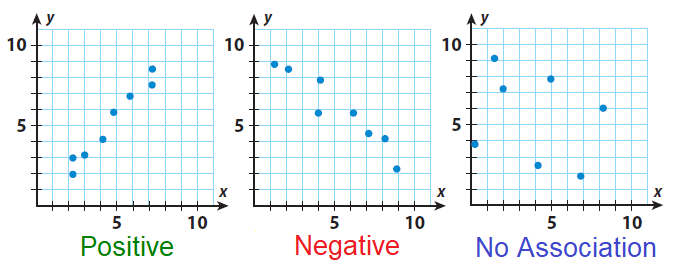 - la forma de la nube indica si la asociación es positiva, negativa o neutra: